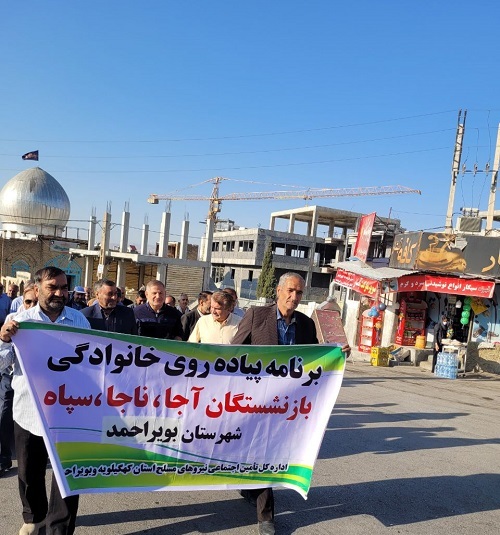 همایش پیاده روی خانوادگی شهرستان بویراحمد با حضور ۱۰۰ نفر از بازنشستگان (سپاه، فراجا، ارتش) و خانواده آنان در امامزاده عبداله یاسوج برگزار شد.