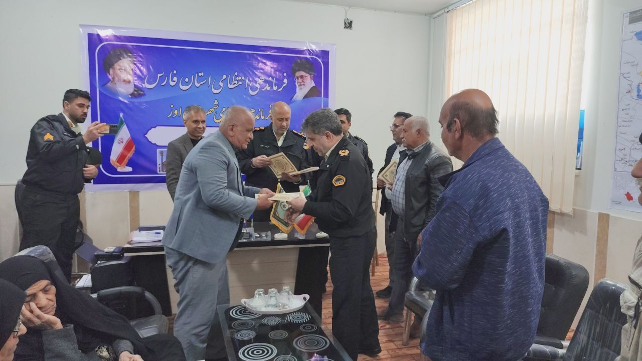 در راستای تجلیل از سال ها تلاش و جانفشانی، اعضای وابسته انتظامی شهرستان اوز،  سردار عزیزاله ملکی، فرمانده انتظامی استان فارس با حضور در این شهرستان ، ضمن دیدار با جمعی از اعضای وابسته ، خانواده شهدا و جانبازان  فرماندهی انتظامی شهرستان  و قدردانی و تشکر از مجاهدت های این بزرگواران و همچنین گرامیداشت یاد و خاطره عزیزان درگذشته، با اهدای لوح سپاس و هدیه از حاضرین تجلیل و تقدیر به عمل آوردند.