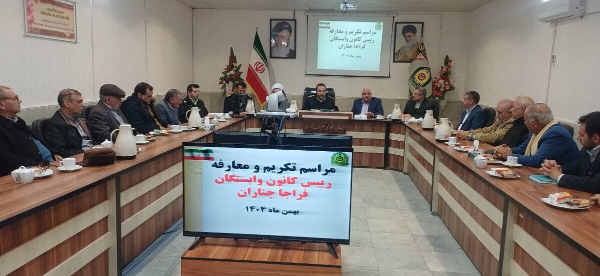 ر ئیس کانون بازنشستگان استان خراسان رضوی به همراه دو نفر از کارشناسان کانون استان و جایگزین مسئول دفتر نمایندگی شهرستان و جمعی از بازنشستگان انتظامی شهرستان با سرهنگ علایی فرمانده انتظامی شهرستان چناران و رؤسای عقیدتی سیاسی و حفاظت اطلاعات شهرستان در راستای تکریم ومعارفه مسئول دفتر نمایندگی شهرستان وتکریم از بازنشستگان و رسیدگی به مشکلات این عزیزان در روز شنبه ۱۱ بهمن ماه در محل دفتر فرماندهی شهرستان دیدار و گفتوگو کردند.